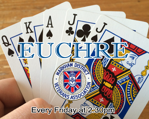 Euchre – Fridays 2:30pm Date/Time Date(s) - 31/10/20252:30 pm - 4:30 pm Location Unionville Room Categories MDVA CLUB EVENT